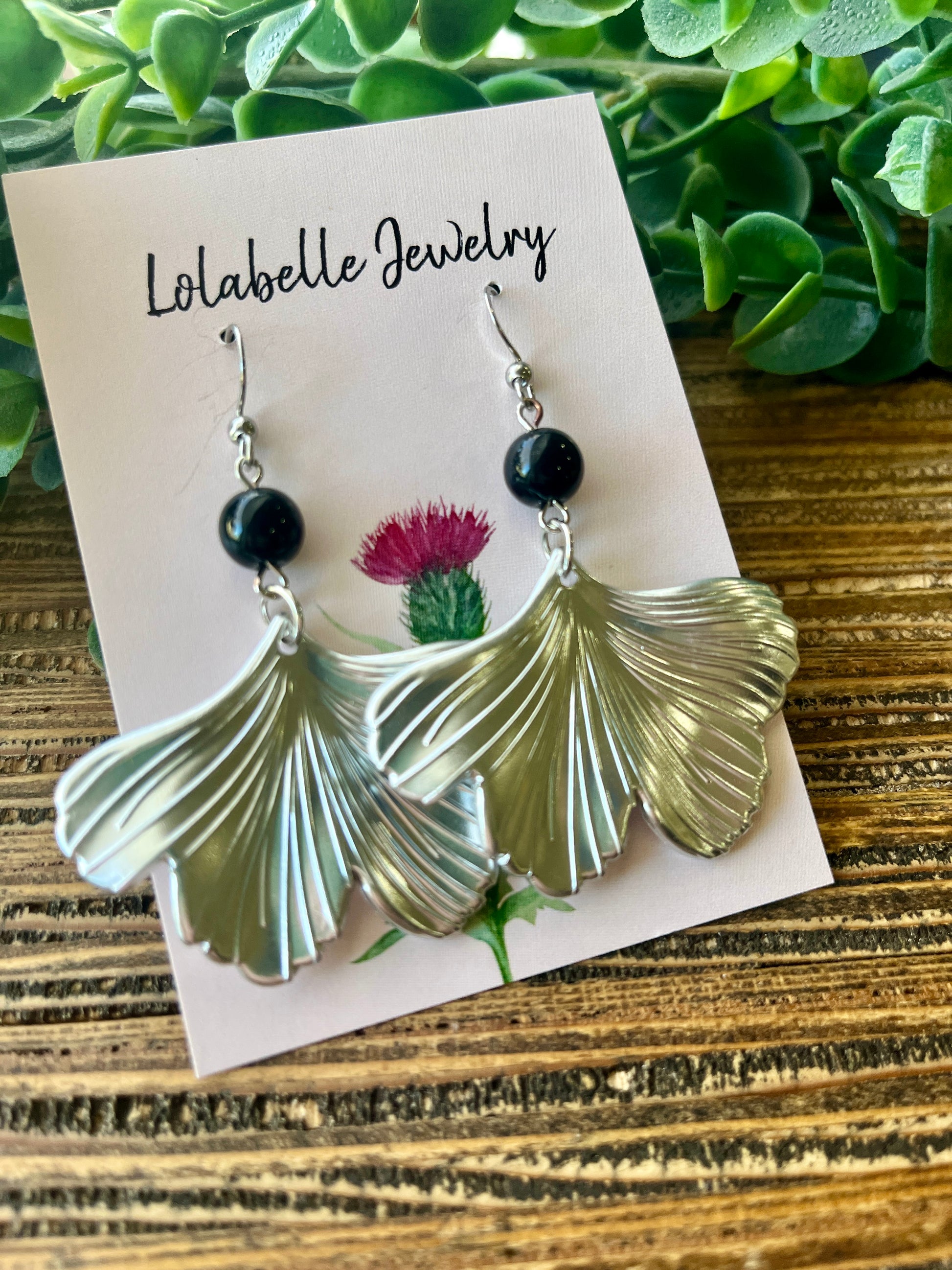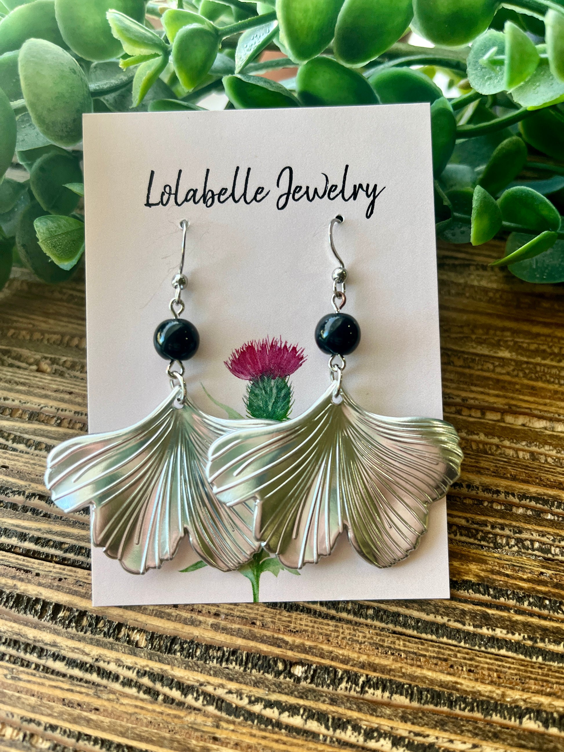 These silver metallic clay ginkgo petal drops offer a light weight earring
